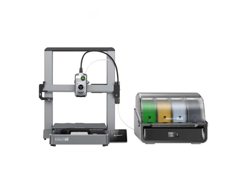 Uz podršku za Creality CFS sistem, uređaj omogućava štampanje u više boja – do 16 različitih filamenata kada se povežu četiri CFS jedinice. Automatska zamena filamenta eliminiše ručne prekide u radu, a ugrađena AI kamera omogućava nadzor štampe u realnom vremenu. Svi fajlovi se prenose lako putem Wi-Fi, USB-a ili koristeći Creality Cloud aplikaciju.