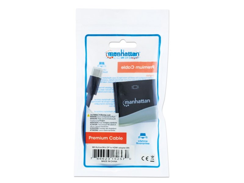 | Povezivanje | Manhattan Active Mini DisplayPort na HDMI adapteri uspostavljaju brzu i praktičnu vezu između medijskog izvora opremljenog Mini DisplayPort-om i HDMI kabla za displej. Ovaj aktivni adapter prevazilazi ograničenja video/grafičke kartice koja nije DP++ (dual-mod) i konvertuje signal u displej. Idealan je za igranje na više ekrana, digitalnu signalizaciju u maloprodajnim displejima, finansijsko tržište i druge primene. Niklovani kontakti i potpuno oklopljenje pomažu Manhattan Active Mini DisplayPort na HDMI adapterima da obezbede jasan i stabilan video prenos u UHD rezoluciji, kućnim i kancelarijskim multimedijalnim aplikacijama. Izdržljive PVC obloge i oblikovane čizme sa rasterećenjem od napona pomažu da se osigura da veze ostanu neprekidne i stabilne. |