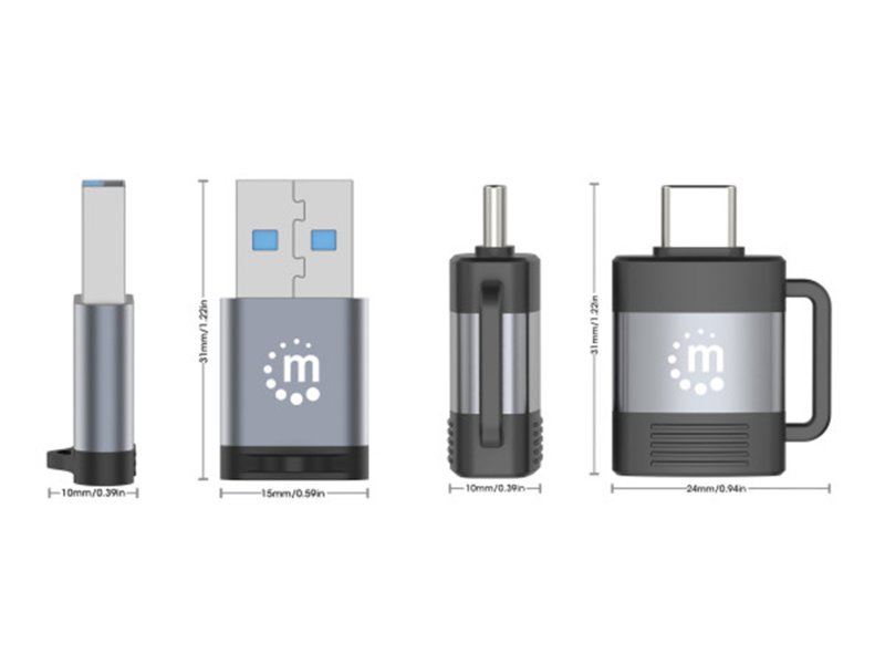 | Povezivanje | Menhetn USB-C na USB-A adapter vam omogućava da povežete standardne USB 3.0 i USB 2.0 uređaje (npr. miševe, tastature, fleš diskove, štampače, itd.) na vaš telefon, tablet ili računar opremljen USB-C, koji je prilično retka opcija povezivanja na modernim laptopovima ili MacBook-ovima®. Sa dužinom od samo 31 milimetar (1,2 in.), ovaj pasivni adapter je dizajniran s obzirom na prenosivost i jednostavnost. Vaš uređaj ostaje spreman da vam posluži sa odgovarajućim mogućnostima punjenja i sinhronizacije do 3 A i 5 Gbps. |