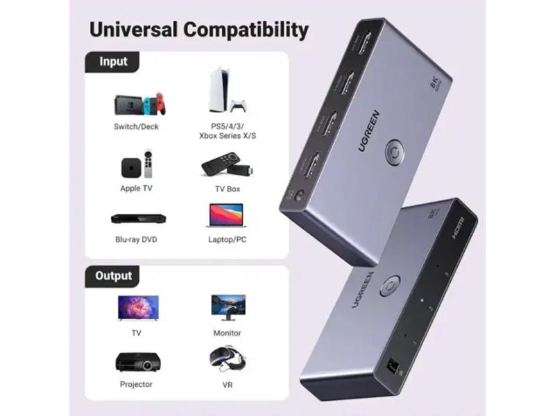 UGREEN 8K HDMI switch podržava većinu uređaja sa HDMI interfejsom:
