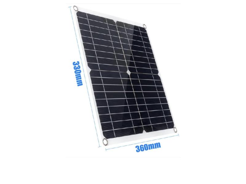 | Ostale karakteristike | SOL-PANEL20W- RV Solar Panel USB Outdoor Waterproof Hike Camping Portable Cells Power Bank Battery Solar Generator Charger for Mobile Phone Snaga solarnog panela: 20W Solarna celija: monokristalni silicijum Velicina solarne ploce: 330 x 360 x 3mm Radni napon solarne ploce: 18V Napon otvorenog kola solarne ploce: 21,6V Struja kratkog spoja solarnog panela: 1,11 A (Max) Izlazni port: Dual USB, DC5521 ženski Karakteristike proizvoda: integrisani 5V modul regulatora napona Upotreba proizvoda: punite uredaje od 5V kao što su mobilni telefoni i sportske kamere i punite 12V automobilske baterije. |