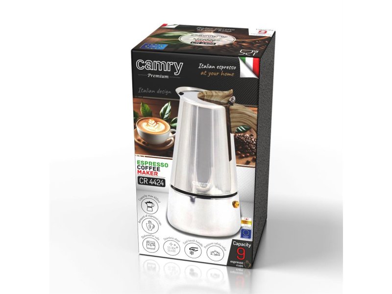 | Ostalo | Ručka koja se ne zagreva Može se prati u mašini za sudove Uređaj je opremljen ventilom za bezbednost koji sprečava nakupljanje prekomernog pritiska unutar uređaja Za upotrebu na električnim, plinskim, keramičkim, halogenim i indukcionim šporetima Možete pripremiti intenzivan espresso ukus korišćenjem kafe srednje finoće mlevenja i srednje ili tamno pečenih zrna Intenzivan ukus aromatičnog, jakog i gustog italijanskog espresa Klasičan, stilski izgled |