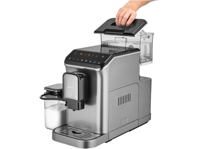 | Ostalo | Kapacitet posude za vodu: 1.5 l Kapacitet posude za mleko: 0.75 l Kapacitet posude za kafu: 200 g Pritisak: 20 bara Dodatne funkcije: Indikator praznog rezervoara za kafu u zrnu, Indikator praznog rezervoara za vodu, Mlin za kafu, Program za uklanjanje kamenca, Pokretanje programa espresso i lungo samo jednim dodirom, Funkcija tople vode, Automatsko ispiranje, LED panel osetljiv na dodir, Funkcija tople vode za čaj ili amerikanu, Funkcija pamćenja veličine kafe, Mlin od nerđajućeg čelika za precizno mlevenje, Pokretanje programa latté i kremasti kapućino sa mikropenom od mleka jednim dodirom, Podesiva doza kafe, Indikator napunjene posude za talog kafe, 15 nivoa mlevenja kafe, Automatski kapućino, Osvetljenje šolje Podržane tehnologije: ECO mode, Pre-steaming sistem za bogatiju aromu Čišćenje: Self-clean (samočišćenje), Odvojiva posuda za talog kafe Ostalo: Termoblok sistem grejanja osigurava optimalnu temperaturu vode Dimenzije: 435 x 320 x 190 mm Težina: 8.7 kg |