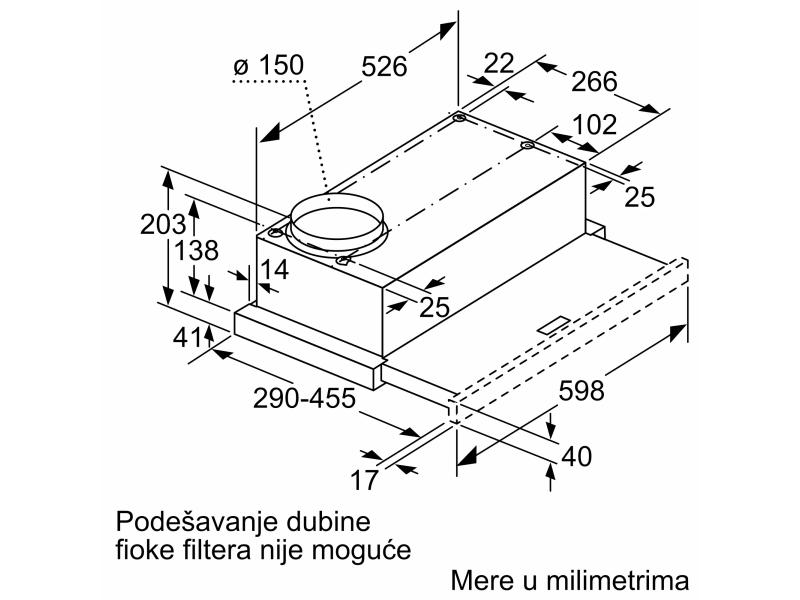 | Dimenzije | Širina: 598 mm Visina: 203 mm Dubina: 290 mm |
