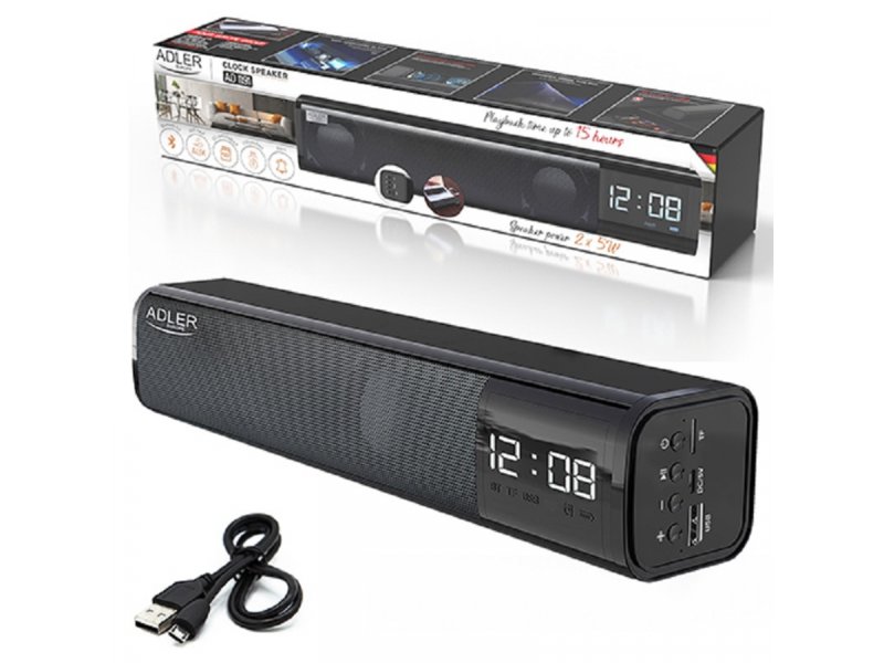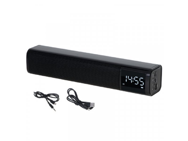 | Karakteristike | Alarm sa BT zvučnikom Snaga zvučnika: 2 x 5W Stereo Bluetooth v 5.0 AUX ulaz Slot za SD karticu USB port Podržani formati za reprodukciju sa SD kartice ili USB stika: Mp3, Wav Trajanje baterije: do 15 h (@33% maksimalna jačina zvuka) Trajanje baterije u režimu mirovanja: do 30 dana Kapacitet baterije: 1200 mAh Vreme punjenja baterije: do 3 sata USB punjenje Dimenzije: 36 x 7.5 x 7.0 cm Materijal kućišta: polikarbonat U pakovanju se nalaze: USB kabl za punjenje i USB na AUX kabl |