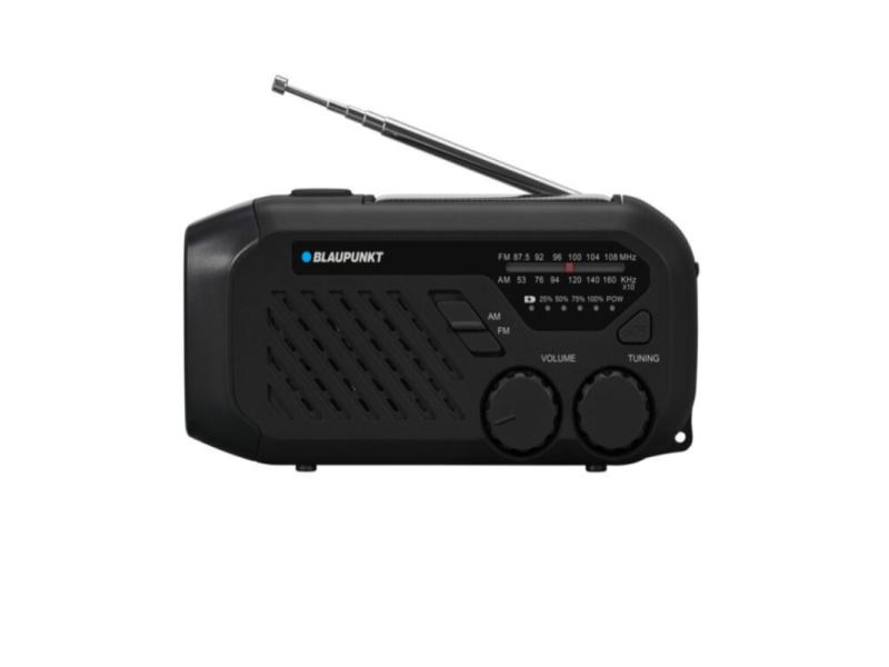 | Karakteristike | Radio: FM: 87,5 – 108,0 MHz AM: 522 – 1620 kHz Teleskopska i rotirajuća antena SOS i svetlo: SOS alarm: ~110 dB LED svetlo sa 3 režima LED svetlo za čitanje Punjenje i baterija: Ugrađeni solarni panel (68 × 26 mm) Mehanička ručna poluga (dynamo) Baterija: 3,7 V / 2000 mAh Funkcija Power Bank (može puniti telefon) Ulaz za punjenje: DC 5 V / 1 A, USB-C Vreme punjenja: 4–5 sati Vreme rada: 10–15 sati Snaga: Izlazna snaga: ~0,8 W RMS Dimenzije i težina: Dimenzije: 145 × 70 × 54 mm Težina: ~0,27 kg |