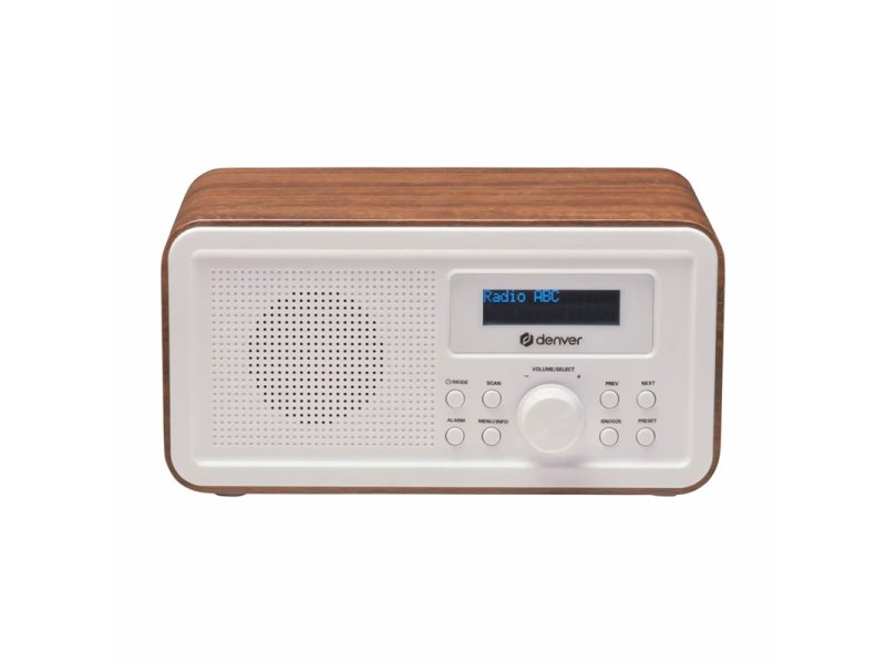 | Karakteristike | analogni radio prijem Teleskopska antena za bolji signal Mogućnost pamćenja stanica: do 10 DAB+ + 10 FM predizabranih stanica Ekran i kontrole LCD ekran sa pozadinskim osvetljenjem Prikaz vremena, naziva stanice i informacija o stanici Mono zvuk Regulacija jačine zvuka: elektronska, sa 20 nivoa Izlaz za slušalice: 3,5 mm priključak Ugrađeni sat i alarm Alarm može da se uključi sa radio signalom ili zvučnim buzzer-om funkcija ponovno odlaganje alarma Mrežno napajanje: 230 V Moguće i baterijsko napajanje: 4 × AA baterije (nisu uključene) Dimenzije: 20 × 10.5 × 12.5 cm Težina: 1.1 kg Drveno kućište elegantan i klasičan izgled |