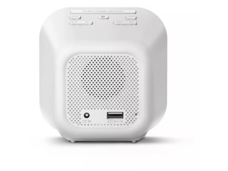 | Karakteristike | Radio sa budilnikom Digitalno FM pretraživanje USB punjač za telefon Ekran sa izgledom ogledala i velikim ciframa sata Izlazna snaga (RMS): 700 mW Zvučni sistem: Mono Sat: digitalni LED ekran format vremena: 12/24 h Alarm: broj alarma: 2 izvor alarma: zujalica/FM radio odlaganje (ponavljanje alarma): da, 9 min resetovanje alarma na 24 sata sat za gašenje: 15/30/60/90/120 min Tjuner: opseg tjunera: FM FM antena frekventni opseg: 87,5 - 108 MHz broj memorisanih stanica: 20 Tip napajanja: ulaz AC: 100–240 V, 50/60 Hz rezervno: 2x AAA baterija (nisu priložene) omogućava memorisanje vremena u slučaju nestanka struje Visina: 110 mm Širina: 110 mm Dubina: 75 mm Neto/bruto težina: 220/440 g |
