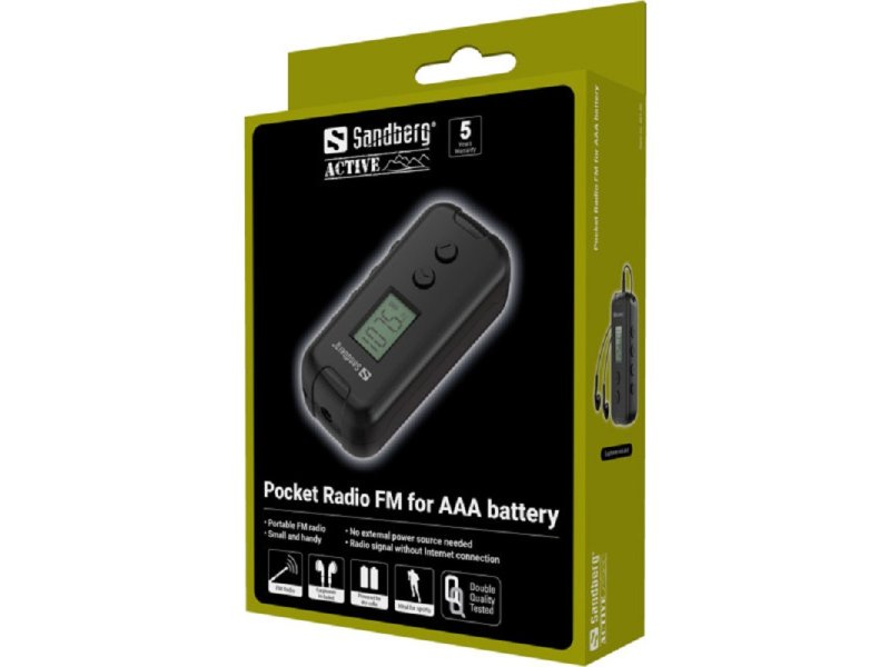 Karakteristike | Sandberg Pocket Radio FM za AAA bateriju je kompaktan i zgodan za vaše aktivnosti na otvorenom. Savršen je za trčanje, vožnju biciklom, kampovanje i tako dalje. Takođe je idealan radio za hitne slučajeve ako električne mreže i interneta nema. Uključene slušalice koje rade i kao antena za prijem radio signala. FM frekventni opseg: 76-109MHz Osetljivost koja ograničava šum: <3.5uV Odnos signala i šuma: >55dBu Frekvencijski odziv: 300-8000Hz Maks. potrošnja struje: <50mA Maks. izlazna snaga: ≥50mw Tip priključka: 3.5mm AUX Ugrađen displej Kompatibilne baterije: 2x AAA (ne dolaze u pakovanju) |