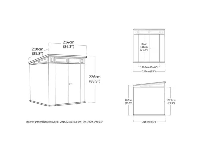 Spoljašnje dimenzije: 216 x 218 x 226 cm