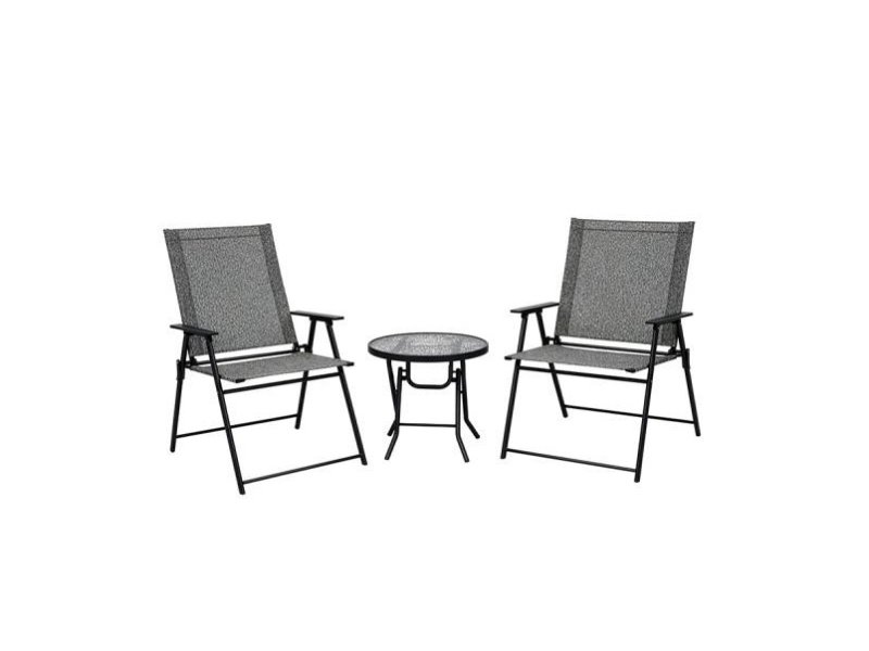 | Karakteristike | - 2 sklopive stolice - jedan sklopivi sto Čelični ramovi su tretirani zaštitnim slojem protiv korozije |