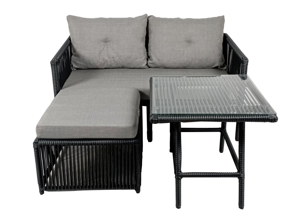 Karakteristike | Baštenska garnitura Materijal okvira: 100% Aluminijum Materijal površine stola: 100% Kaljeno staklo Dimenzije stola: Širina: 60 cm Visina: 50 cm Dubina: 60 cm Dimenzije sofe: Širina: 158 cm Visina: 62 cm Dubina: 62 cm Dimenzije taburea: Širina: 55 cm Visina: 38 cm Dubina: 55 cm Napomena: Otpornost na tamnjenje |