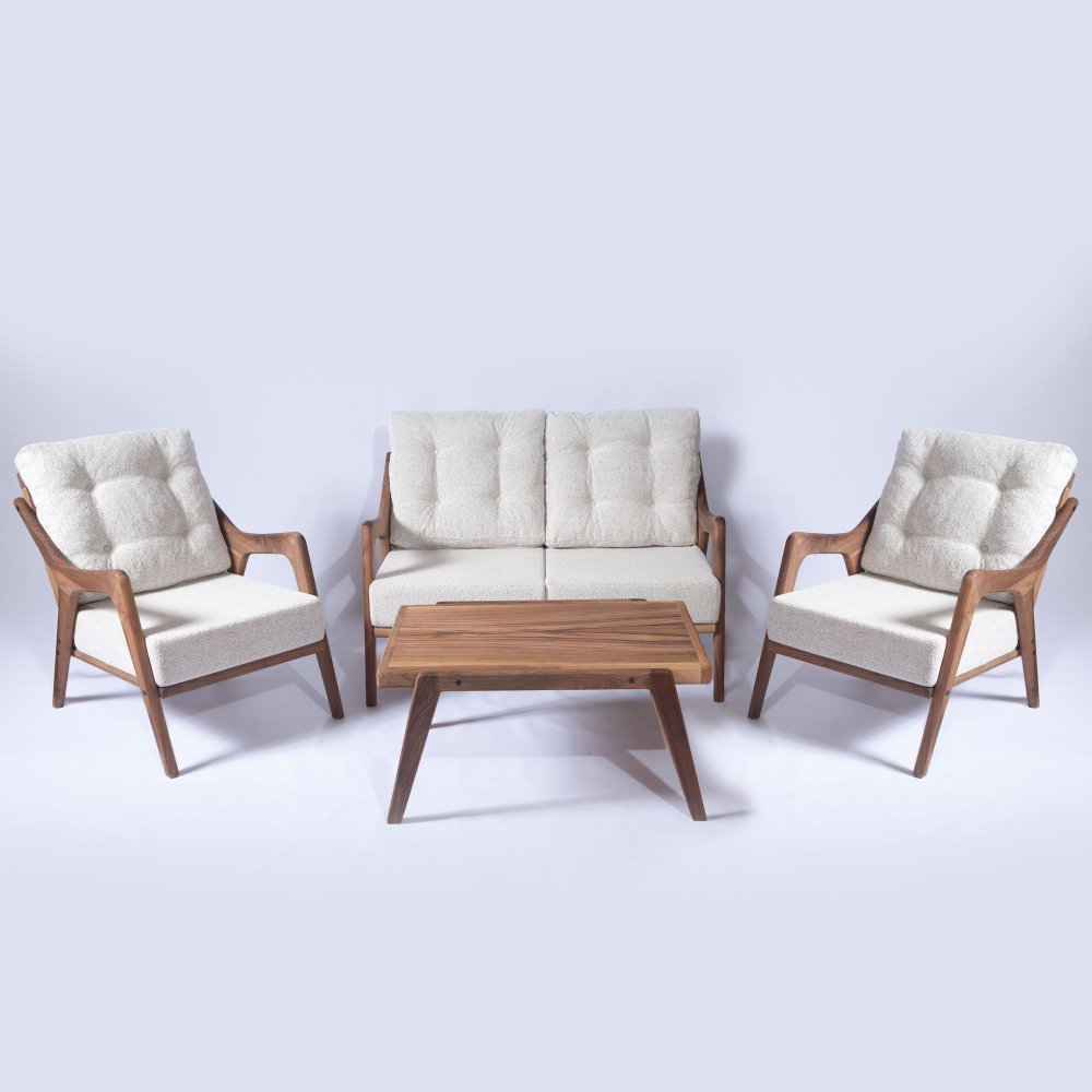 Izrađen od 100% orahovog drveta i obložen chenille pređom sa mekanom sunđerastom ispunom od 32 DNS, ovaj set kombinuje izdržljivost i estetiku. Svi elementi dolaze rastavljeni, što omogućava lakši transport i sklapanje prema vašim potrebama.