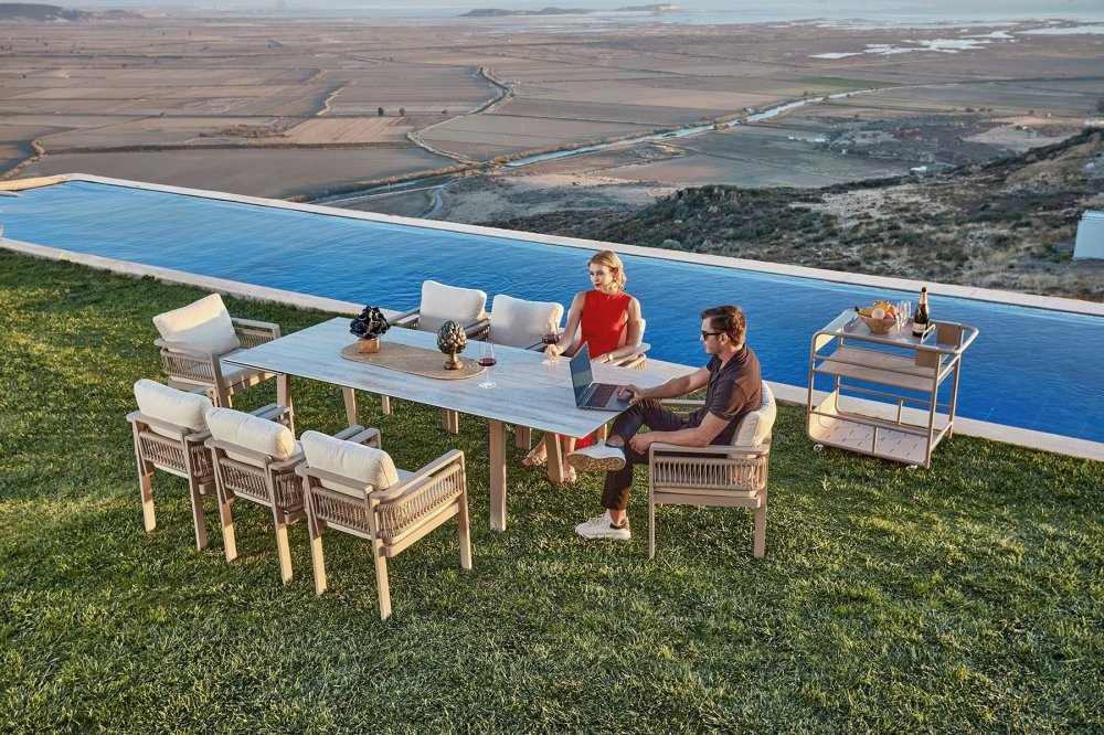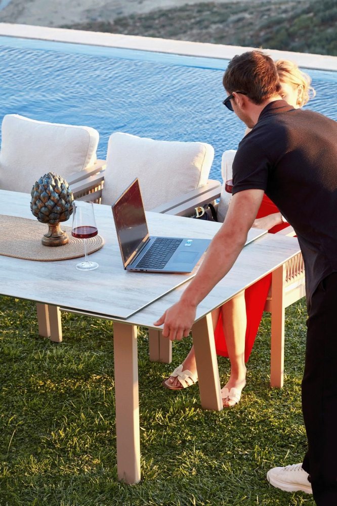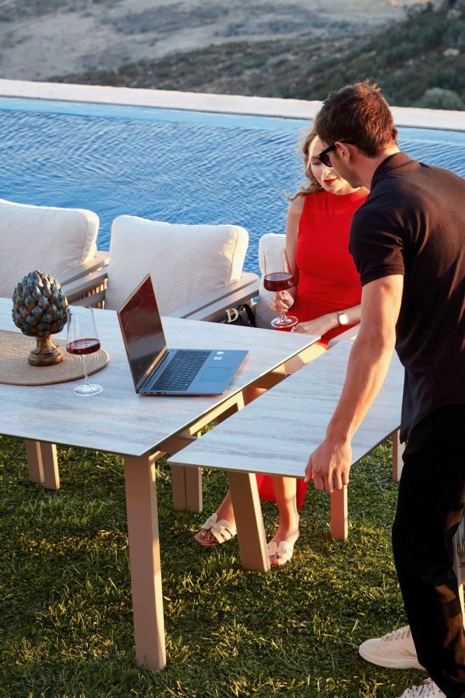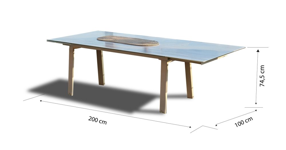 | Karakteristike | Set baštenskih stolova i stolica (9 komada) Venedik Ceramic Tkanina: 100% Olefin 28 DNS srednje tvrd sunđer (12 cm) hemijsko čišćenje Jastuk (2 komada) Prenosivi dušek i jastuk Aluminijumski okvir i detalji od drveta Iroko Sofa sa 3 sedišta: Širina: 195 cm Visina: 74 cm Dubina: 66 cm (1 komada) Dvosed: Širina: 66 cm Visina: 74 cm Dubina: 70 cm (2 komada) Visina sedišta: 44 cm Sto za kafu: Širina: 106 cm Visina: 64,5 cm Dubina: 42,2 cm (1 komad) |