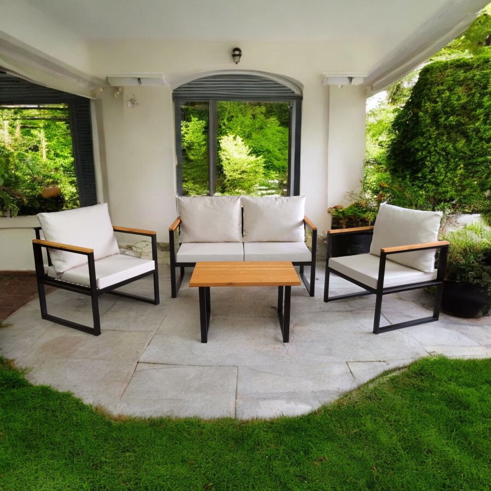 Karakteristike | Set baštenskog nameštaja CPT5553 130 Okvir: 100% Metal Tkanina: 100% Lan Vrh tabele: 100% Drvo Vrh ruku: Borovo drvo 28 DNS pena za sedenje (8 cm) Dvosed: Širina: 130 cm Visina: 75 cm Dubina: 62 cm (1 komad) Dvosed: Širina: 70 cm Visina: 75 cm Dubina: 62 cm (2 komada) Sto za kafu: Širina: 75 cm Visina: 45 cm Dubina: 50 cm (1 komad) |