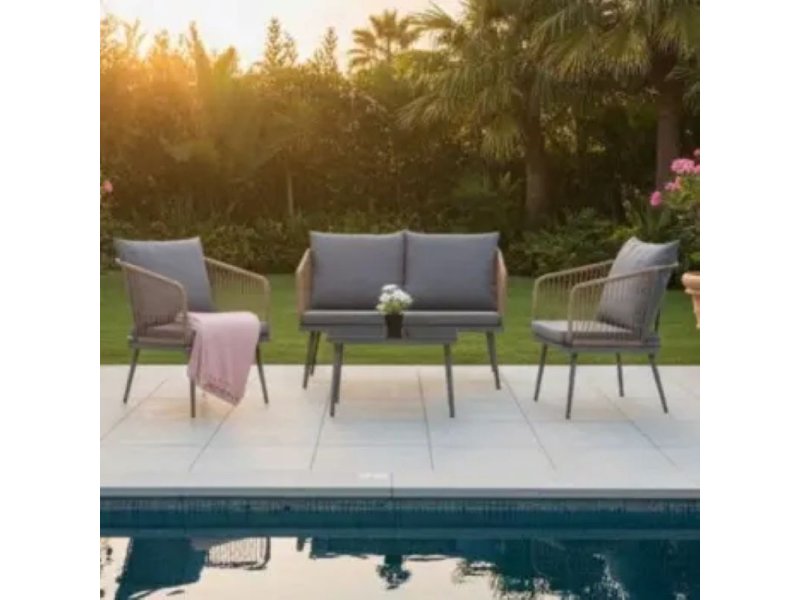 Idealna za terasu, balkon ili vrt, ova savremena garnitura pretvara svaki kutak na otvorenom u prijatnu oazu za opuštanje i druženje.