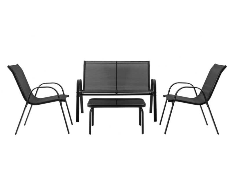 | Karakteristike | Baštenska garnitura sa dvosedom Lagos Black Set sadrži: - 2 stolice dimenzija š54 × d68 × v84 cm - 1 dvosed dimenzija š114 × d68 × v84 cm - 1 sto dimenzija 70 × 40 × 37 cm sa staklenom pločom Konstrukcija je od čelika Sedišta i nasloni su od izdržljive dvostruke Textilene mreže Sto ima silk-print staklenu ploču |