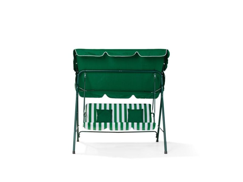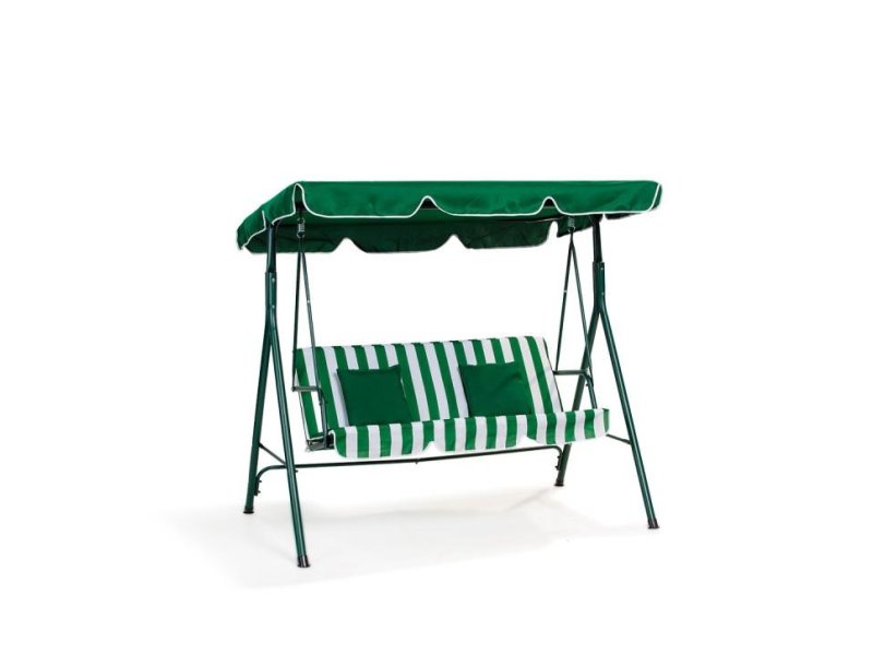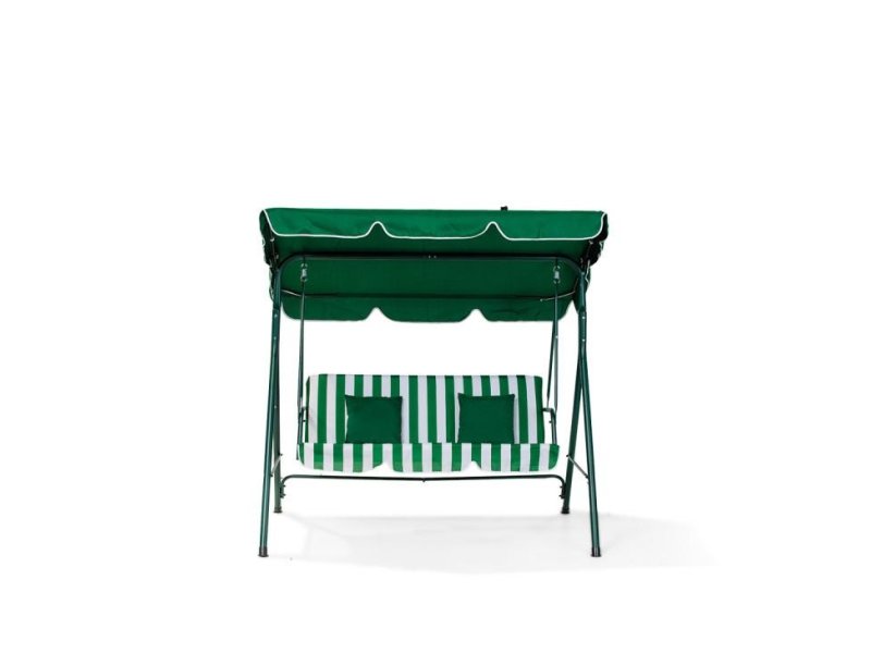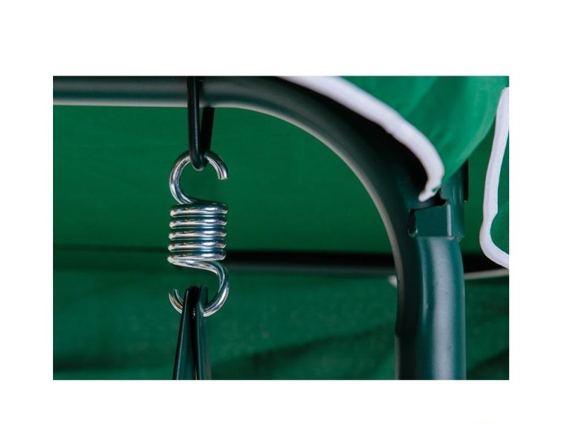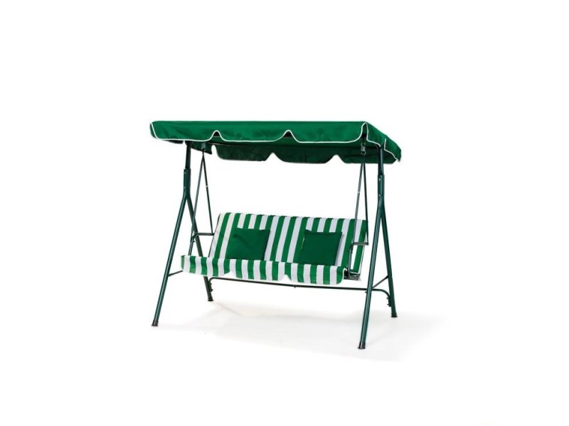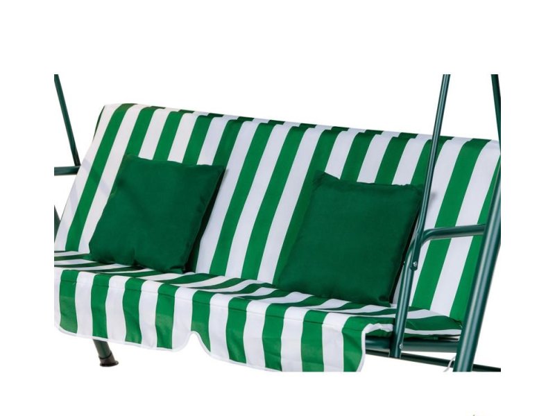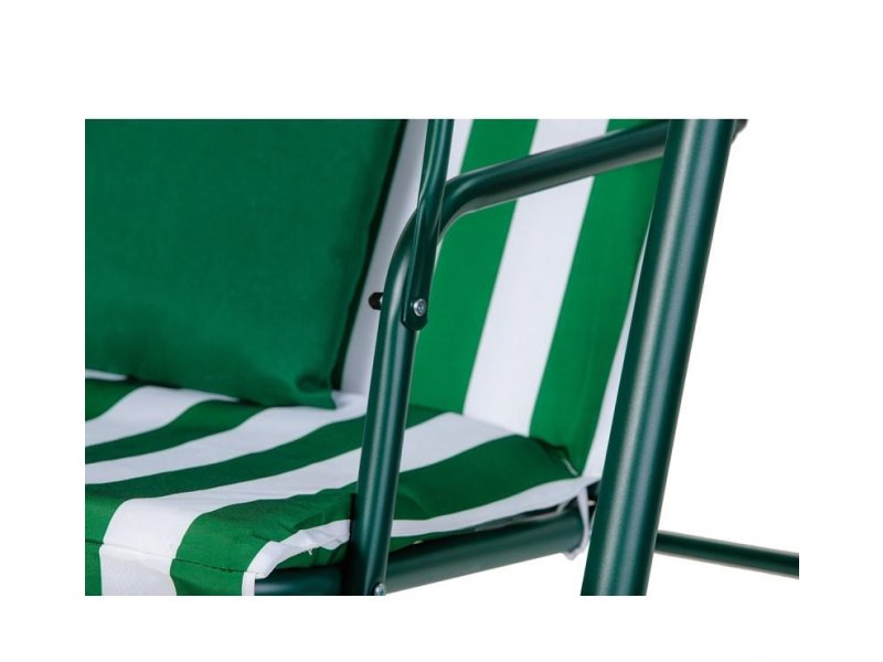 | Specifikacija | Dimenzije 110 × 170 × 153 cm čelična konstrukcija prečnika cevi 38 mm sa zaštitnim premazom za spoljašnju upotrebu maksimalna nosivost oko 210 kg sedište sa mekim jastucima i sunđerom debljine oko 6 cm krov od poliestera oko 160 g/m² stabilna i čvrsta konstrukcija namenjena za 2 osobe boja zeleno-bela težina oko 20–21 kg pogodna za terasu i dvorište |