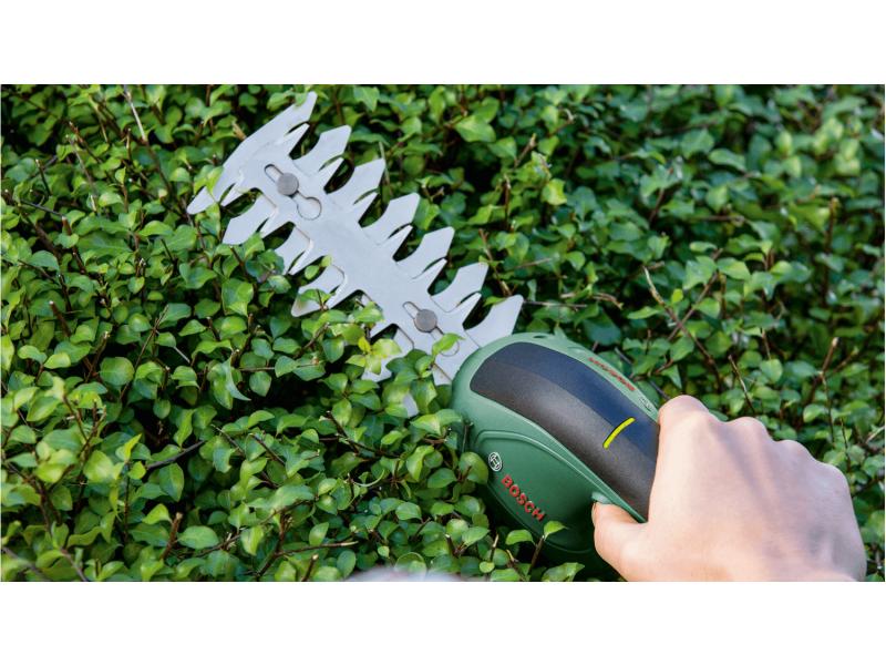 Lagana konstrukcija, optimalni rezultati – uživanje u efikasnim performansama i lakom rukovanju prilikom šišanja mladih živih ograda i grmlja pomoću EasyShear. Sa težinom od samo 530 g, kompaktna konstrukcija ovog laganog alata pojednostavljuje njegovo skladištenje i da bude spreman za korišćenje u trenu. Sa integrisanim litijum-jonskim akumulatorom od 3,6 V, ove makaze obezbeđuju optimalne performanse. Uživanje u brzoj, jednostavnoj i praktičnoj izmeni noževa bez korišćenja ikakvog alata. Ove makaze su idealne za šišanje grmlja od šimšira, forsitije i božikovine, tise i živih ograda od kaline.