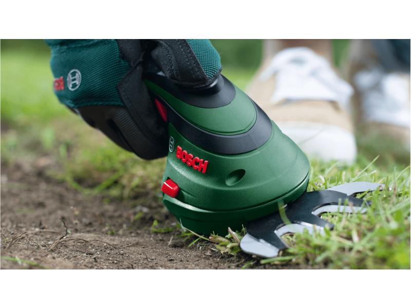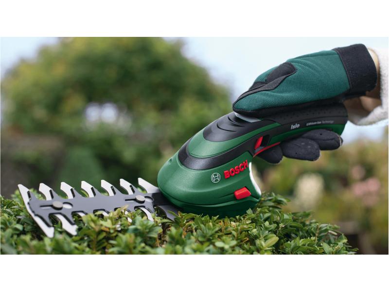 Neizostavni baštenski alat – akumulatorski ISIO je impresivan višenamenski alat dizajniran za oblikovanje grmlja i ivica travnjaka. Dodatna oprema uključuje nož za grmlje od 120 mm i nož za travu od 80 mm, kao i teleskopsku dršku. Njegov Multi-Click sistem pojednostavljuje menjanje pribora. Litijum-jonski akumulator od 3,6 V pruža do 50 minuta rada, bez zastajanja, zahvaljujući ugrađenom Bosch Anti-Blocking sistemu. Ergonomski je dizajniran za maksimalnu udobnost. Sa težinom od samo 550 g, ISIO je lak za manevrisanje i kompaktan za jednostavno skladištenje.