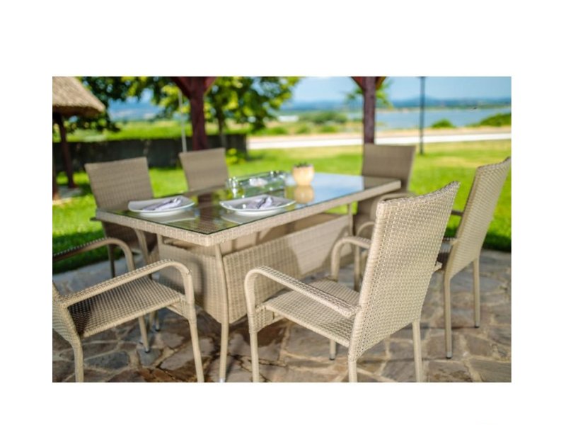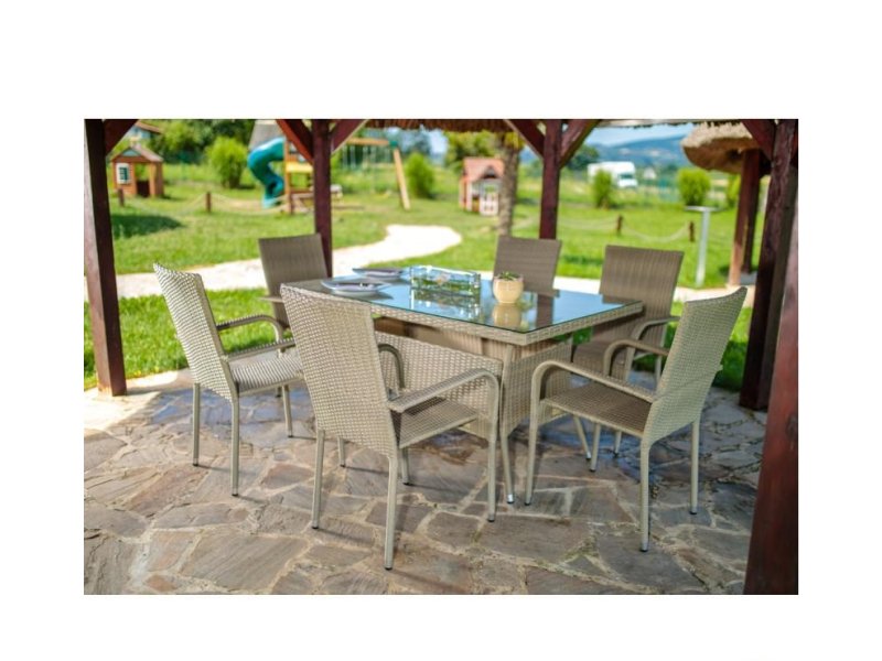 | Karakteristike | Metalna konstrukcija sa zaštitnim premazom pogodnim za spoljašnju upotrebu Sedište i naslon od metalne mreže koji omogućavaju prozračnost i lako održavanje Nasloni za ruke za veću udobnost pri sedenju Otporna na vremenske uslove kao što su kiša, sunce i vlaga Stabilna konstrukcija i jednostavno održavanje uz dug vek trajanja |