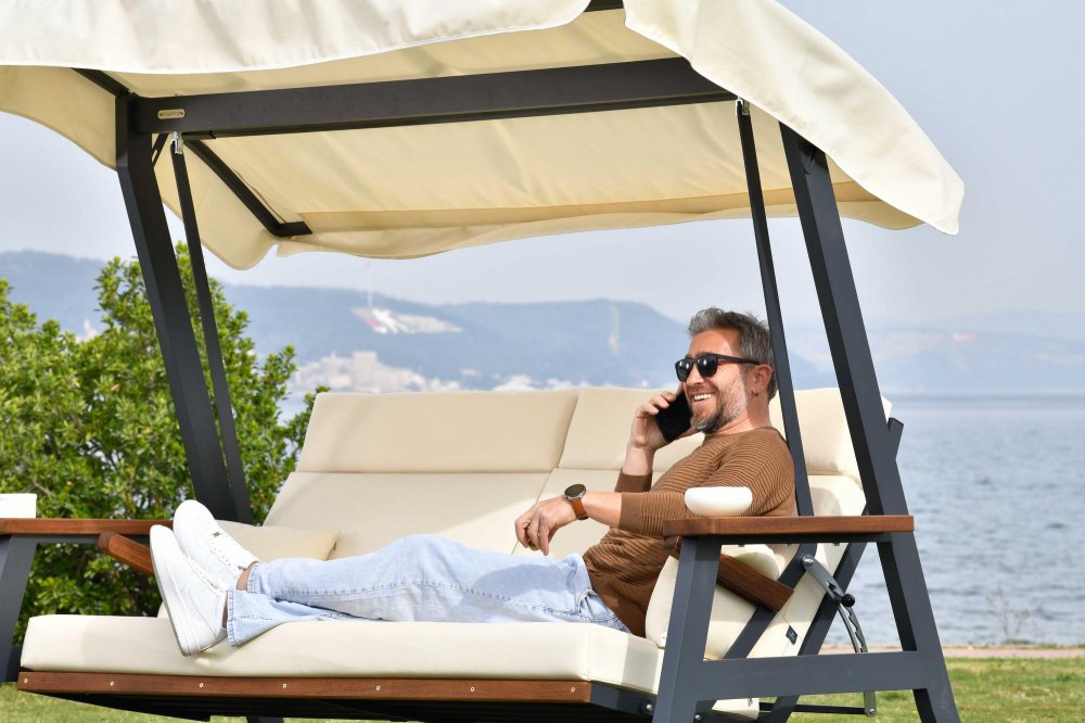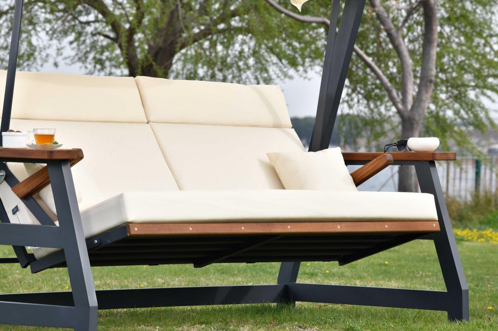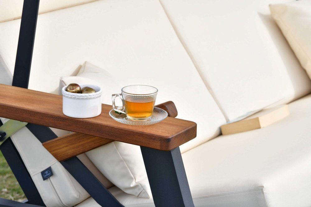 | Karakteristike | Okvir: 100% NE rđajući Aluminijum Naslon za ruke: 100% Iroko drvo Tkanina: 100% Oksfordska spoljna tkanina Vodootporan Otporan na UV svetlost Ne bledi Jastuk se može ukloniti Navlaka za jastuke koja se može ukloniti i prati Podesiv naslon za leđa u 5 nivoa Adjustable Avning 1 jastuk za sedište, 2 jastuka za leđa, 2 jastuka za glavu, 2 jastuka za bacanje uključena |