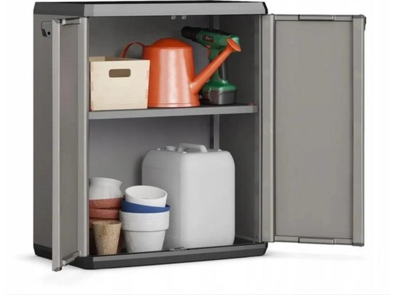Keter Piu Low Cabinet je kompaktan, funkcionalan ormarić. Sa dimenzijama od 68 x 39 x 83 cm, idealan je za male prostore kao što su predsoblje, ostava, vešernica, garaža ili terasa.