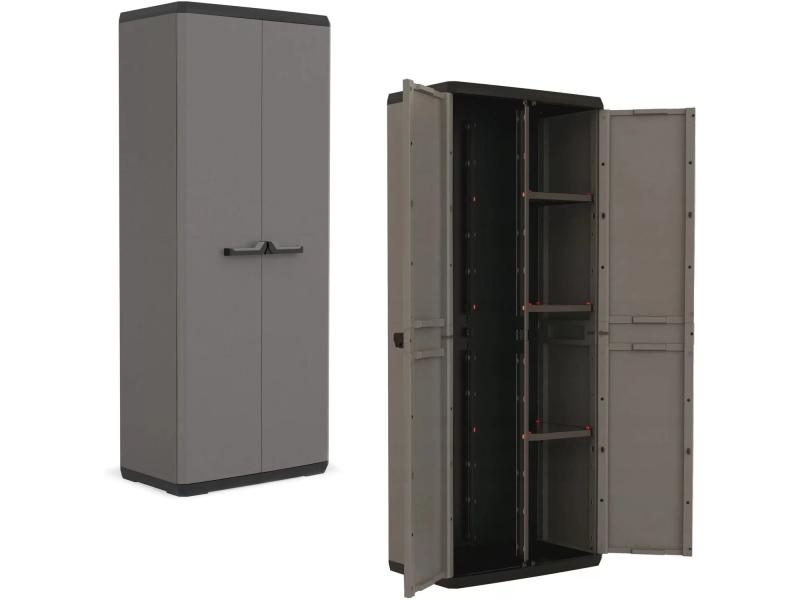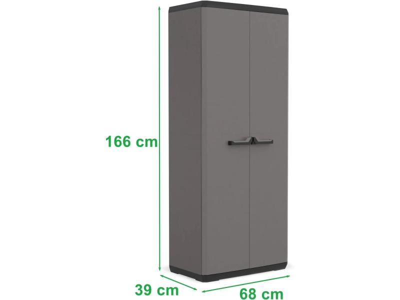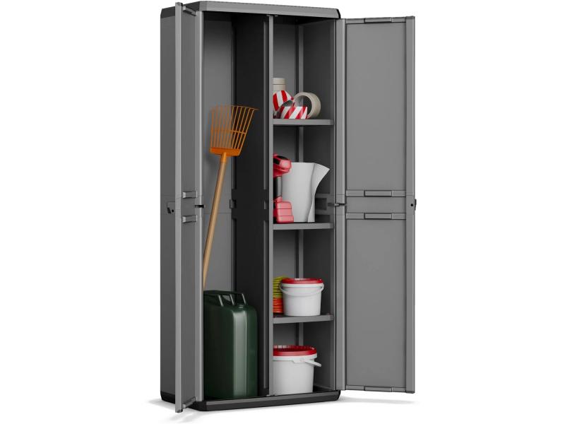 Keter Piu Utility je visok i funkcionalan plastični ormar dizajniran za organizaciju raznih predmeta u domaćinstvu: od alata, sredstava za čišćenje, pa sve do baštenskog pribora, metli i slično. Zahvaljujući kvalitetnoj konstrukciji i elegantnom izgledu, uklapa se u garaže, ostave, pomoćne prostorije pa i unutrašnje prostore.