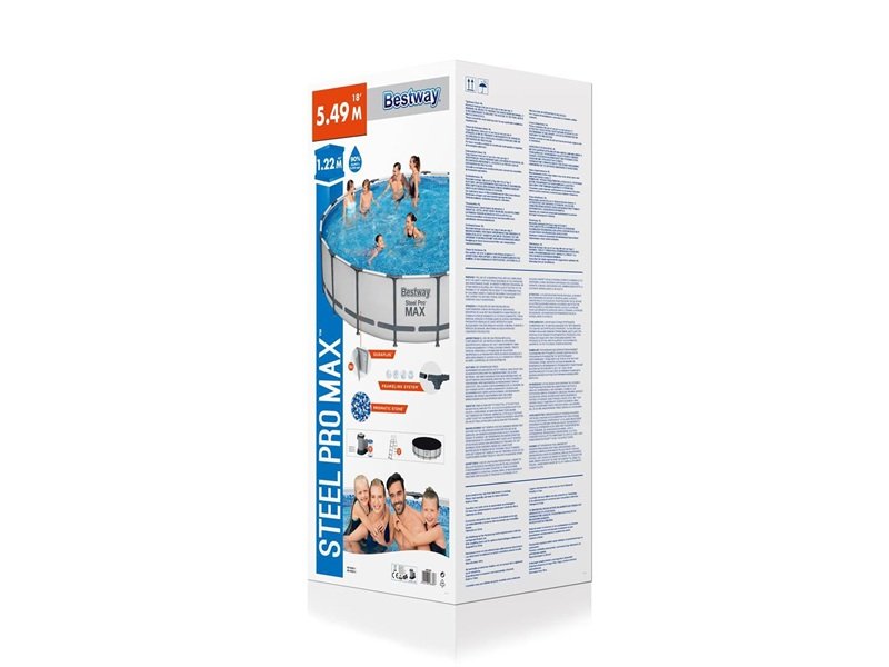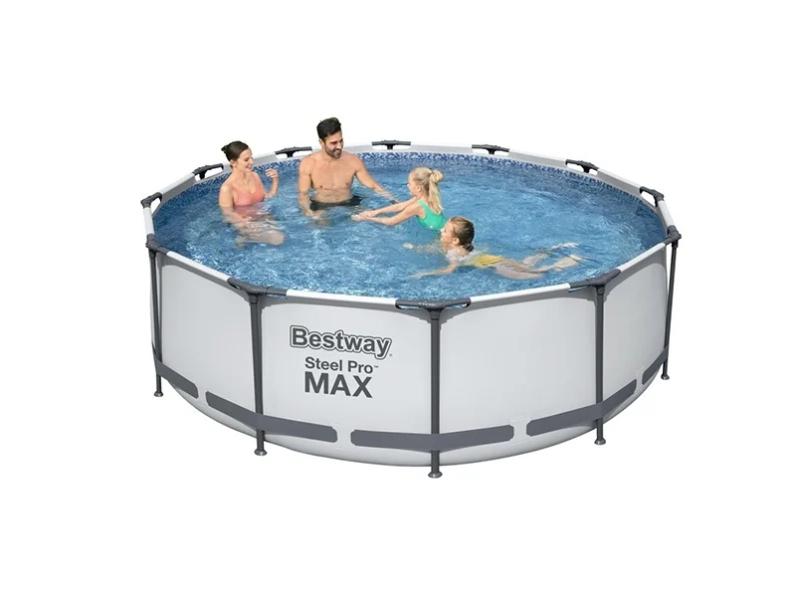 Bazen za dvorište BESTWAY Pro Max sa čeličnim ramom 366x100 cm 56418 sa čvrstom, stabilnom čeličnm konstrukcijom. Namenjen je celoj porodici, jer je dovoljno prostran i dubok. Konstrukcija ovog porodičnog bazena za dvorište je napravljena od nerđajućeg čelika koje nosi telo bazena napravljenog od posebnog, na pritisak veoma otpornog, troslojnog Tritech™ materijala. Porodični bazen za dvorište Bestway se jenostavno i brzo montira bez upotrebe dodatnog alata. U kompletu se dobija filter - pumpa protoka 2006 l/h i merdevine radi lakšeg ulaska i izlaska iz bazena. Radi lakšeg pražnjenja, porodični bazen za dvorište Bestway sa čeličnim ramom je opremljen odvodnim ventilom preko koga se lako istače voda.