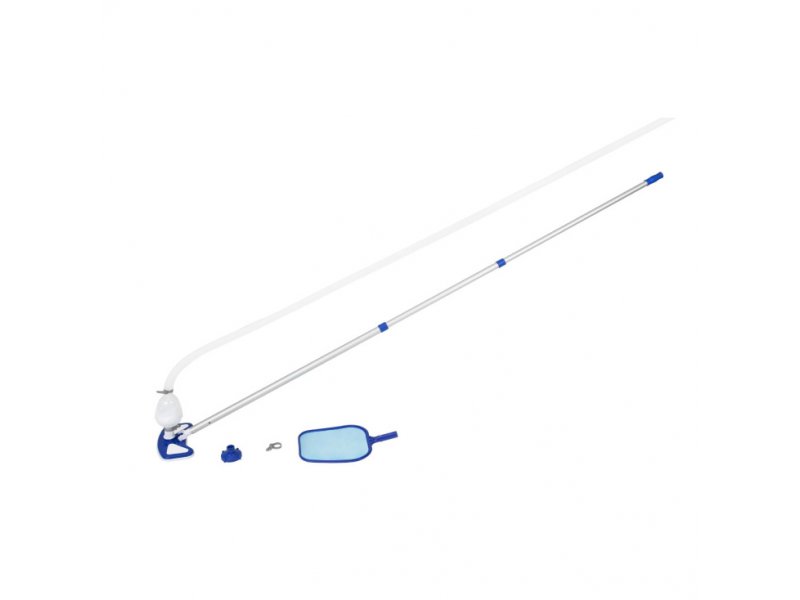 | Karakteristike | Namena: Za nadzemne bazene prečnika do 6.1 m Sadržaj pakovanja: Podesiva aluminijumska šipka dužine 2.79 m, ukloniva vreća za otpad, usisno crevo prečnika 3.2 cm i dužine 7.5 m, |