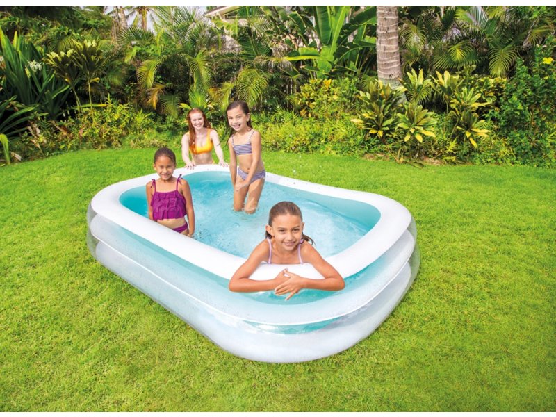 Dečiji bazen 262 x 175 x 56 cm Intex 56483NP unosi zabavu i osveženje u letnje igre. Bazen je dimenzija 262 x 175 x 56 cm, pa je dovoljno komotan za dečije igre, ali i relaksaciju roditelja. Maksimalna preporučena visina vode je 36cm, tako da je kapacitet bazena 770 litara. Napravljen je od 12ga vinila, sa širokim zidovima sa dve vazdušne komore, koji povećavaju udobnost i stabilnost bazena. Bazen je dekorativnog izgleda, sa prozirnim spoljnim zidovima. Dečiji bazen 262 x 175 x 56 cm Intex 56483NP se jednostavno postavlja, a odvodni čepo olakšava pražnjenje bazena radi čišćenja, menjanja vode ili odlaganja. Dečiji bazen 262 x 175 x 56 cm Intex 56483NP se na kraju sezone kupanja može isprazniti i spakovati u kutiju, čime se olakšava njegovo čuvanje do naredne godine.