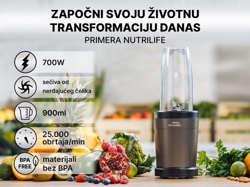 Uređaj je napravljen od materijala bez štetih BPA spojeva, uključujući i Izdržljiva Tritan boca i kućište od nerđajućeg čelika, Primera Nutrilife osigurava bezbedne, hranljive obroke uz dugotrajan učinak-pomažući vam da prigrlite zdraviji način života za sebe i vaše voljene.