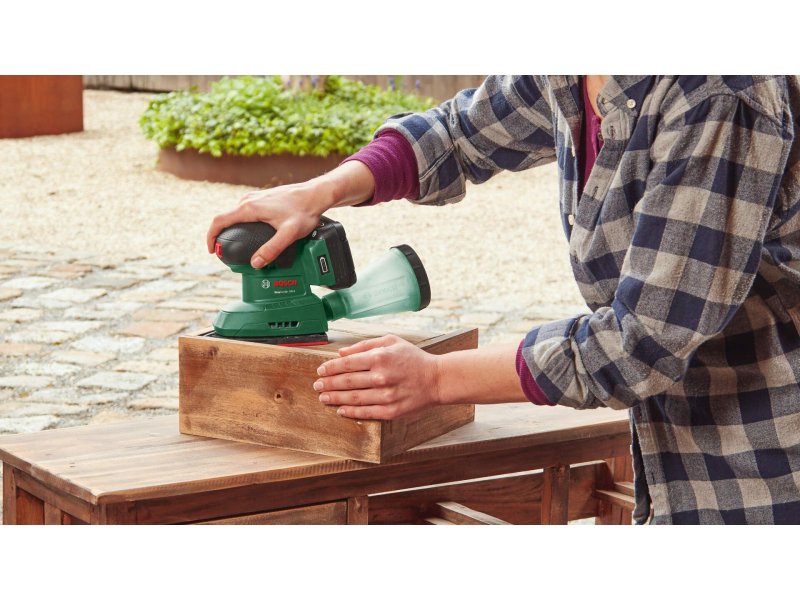 | Ostale karakteristike | Napon 18 V Preporuka za akumulator >= 2,5 Ah Broj vibracija 22,000 min-1 Prečnik oscilacionog kruga 1,6 mm Brusna površina 104 cm² Fiksiranje brusnog lista Mikro čičak Dimenzije alata (D x Š x V) 284 x 105 x 134 mm Težina 0,8 kg Nivo zvučnog pritiska 78 dB |
