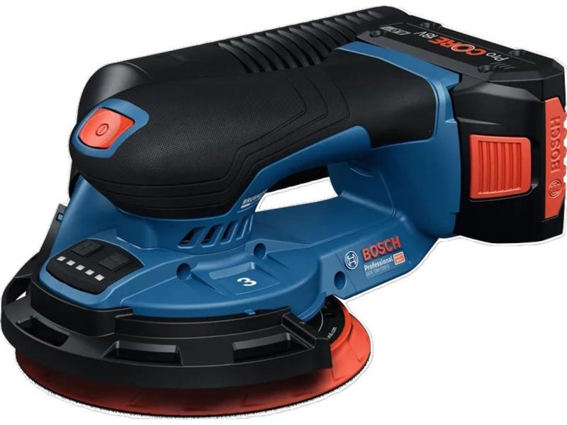 Model GEX 18V-150-3 Professional ima kutiju za prašinu, mogućnost izbora brzine, indikator statusa akumulatora i zaštitni prsten, kao i brusni tanjir od 150 mm.