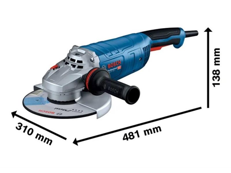 | Ostale karakteristike | Nominalna ulazna snaga: 2700 W Napon: 230 V Prečnik ploče: 180 mm Navoj brusnog vretena: M14 Glavna drška: Rattail Lončasta četka, Ø: 100 mm Lončasti brus, prečnik: 110 mm Provrt, Ø: 22.23 mm Težina: 5.8 kg Prekidač koji se može blokirati Obim isporuke: Bosch GWS 27-180 J Zatezna navrtka Dodatna drška Ključ za dve rupe Zaštitni poklopac Prihvatna prirubnica |