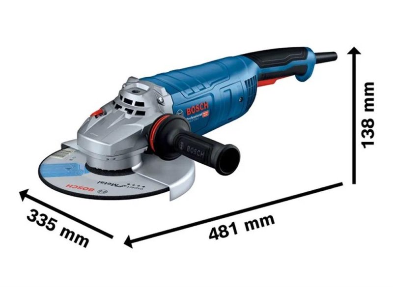 | Ostale karakteristike | Nominalna ulazna snaga: 2700 W Napon: 230 V Prečnik ploče: 230 mm Navoj brusnog vretena: M14 Glavna drška: Rattail Lončasta četka, Ø: 100 mm Lončasti brus, prečnik: 110 mm Provrt, Ø: 22.23 mm Težina: 6 kg Prekidač koji se može blokirati Obim isporuke: Bosch GWS 27-180 J Zatezna navrtka Dodatna drška Ključ za dve rupe Zaštitni poklopac Prihvatna prirubnica |