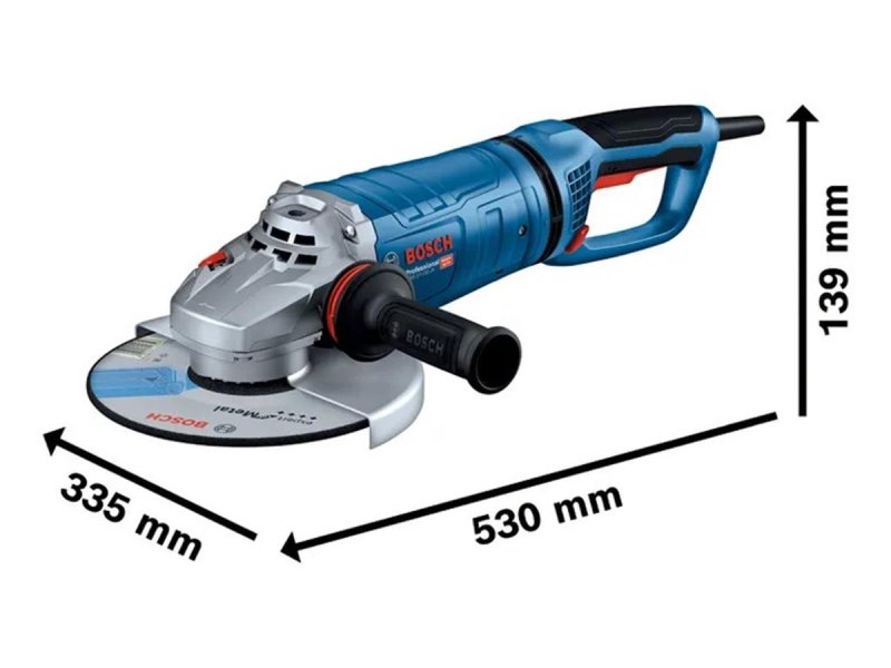 | Ostale karakteristike | Nominalna ulazna snaga: 2700 W Napon: 230 V Nominalna max izlazna brzina bez opterećenja: 6500 rpm Prečnik ploče: 230 mm Navoj brusnog vretena: M14 Glavna drška: D-ručica Lončasta četka, Ø: 100 mm Lončasti brus, prečnik: 110 mm Provrt, Ø: 22.23 mm Težina: 6.3 kg Prekidač koji se može blokirati Obim isporuke: Bosch GWS 27-230 JR Zatezna navrtka Dodatna drška Ključ za dve rupe Zaštitni poklopac Prihvatna prirubnica |