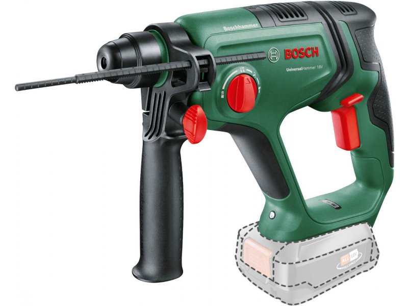 | Karakteristike | Tehnički podaci Energija udarca, maks. 2,0 J Broj obrtaja u praznom hodu 0 - 2.000 min-1 Napon akumulatora 18 V Dužina 307 mm Širina 84 mm Visina 208 mm Prihvat alata SDS-plus Dimenzije bušenja Maks. prečnik bušenja u betonu 16 mm Maks. prečnik bušenja u čeliku 13 mm Maks. prečnik bušenja u drvetu 25 mm |