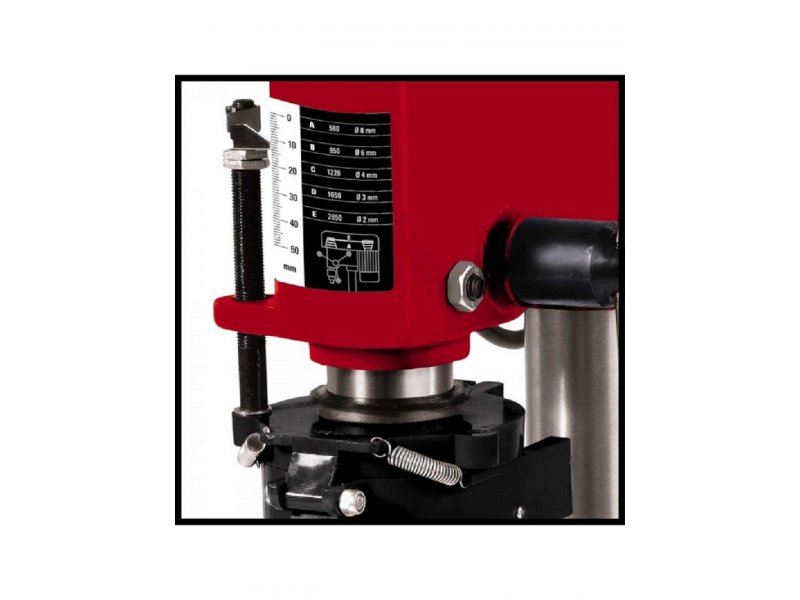 | Karakteristike | Napon 230 V ~ 50 Hz Grlo 104 mm Broj obrtaja 580-2650 min -1 Stezna glava Mount R 1,5 -13mm Ceradom bušenje Tabela -45 ° bis +45 ° Max dubina bušenja 50 mm Težina: 20 kg |