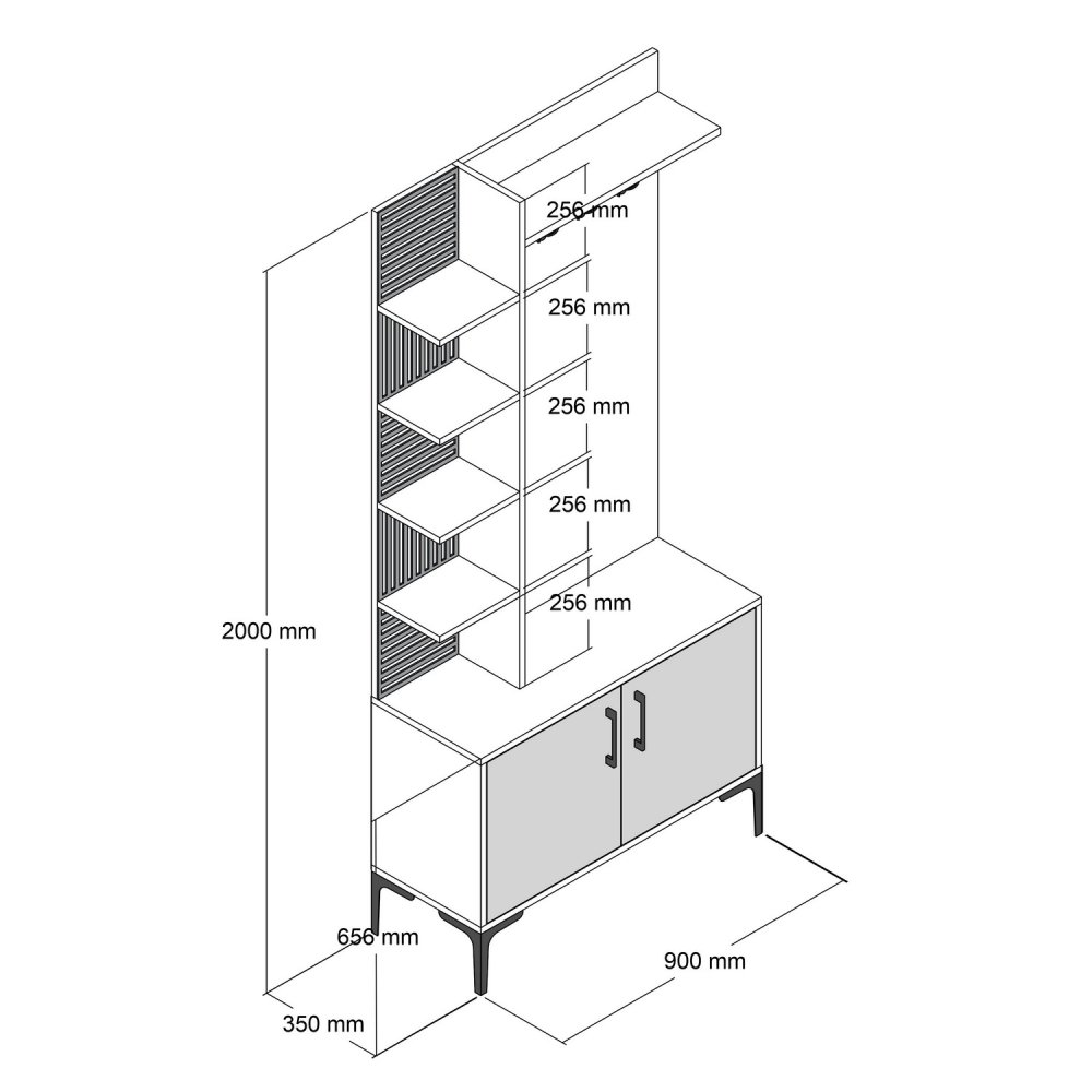 | Specifikacija | Čiviluk Viyana D Walnut White 100% Melaminska obloga iverica Debljina: 18 mm Metalna nogara, metalna ručka, metalna vešalica Širina: 90 cm Visina: 200 cm Dubina: 35 cm Visina police: 25,6 cm Brojne police Može se pričvrstiti na zid |