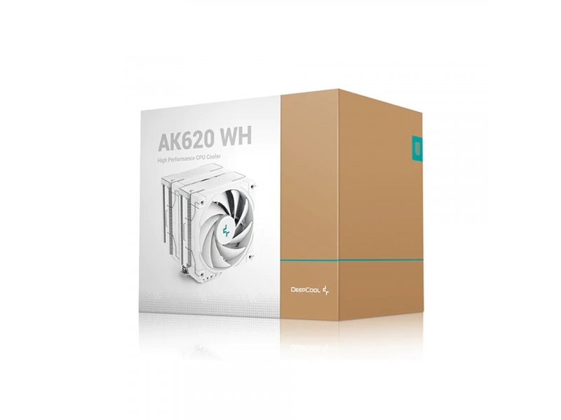 Postignite dominantno hlađenje i tihu efikasnost uz DeepCool AK620 WH High Performance CPU Cooler opremljen sa šest bakarnih toplotnih cevi naslaganih sa gustim nizom rebara sa dva tornja i dva 120 FDB ventilatora.