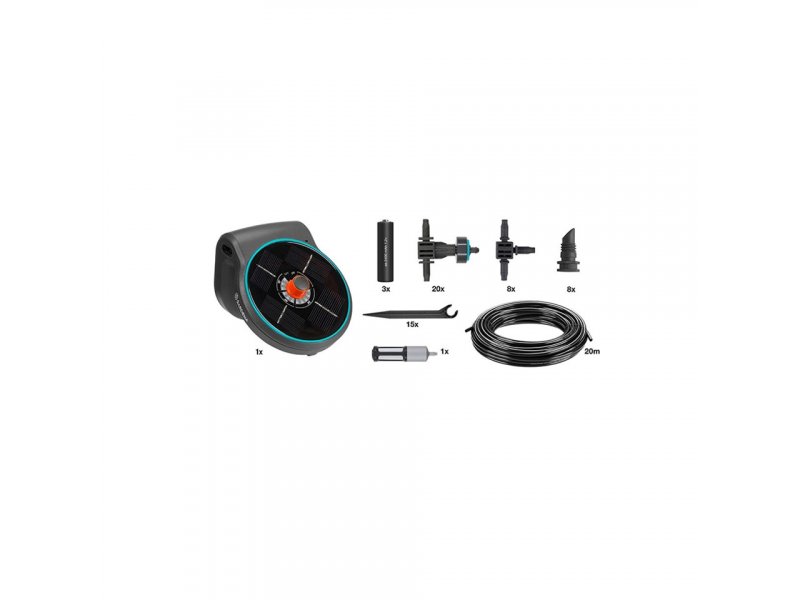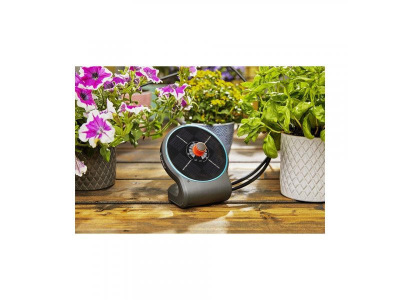 Set za zalivanje kap po kap Aquabloom Solar Gardena GA 13300-20 namenjen je za zalivanje saksija i to do dvadeset saksija. Ovaj set opremljen je integrisanim solarnim panelom, tajmerom i električnom pumpom, sa četrnaest programa koji se mogu odabrati, kao i ručna funkcija zalivanja. Set za zalivanje kap po kap Aquabloom Solar Gardena GA 13300-20 ima opciju biranja programa navodnjavanja pa tako možete da izaberete jedan od 14 unapred definisanih programa za zalivanje. Ovaj Aquabloom Solar set se može nadograditi, ali se ne može proširiti. Set za zalivanje kap po kap Aquabloom Solar Gardena GA 13300-20 predstavlja idealan izbor za vas.