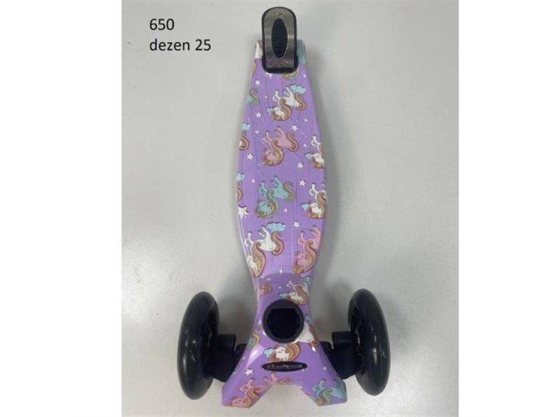 | Karakteristike | Materijal: Plastificirani metal + ojačana plastika Podloga: Teksturirana površina protiv klizanja Kočnica: Nožna kočnica iznad zadnjeg točka Točkovi: PU, tihi i pogodni za asfalt Dužina osnove: oko 55 cm Visina volana: od 60 do 80 cm (podesiva) Težina trotineta: ~2,5 kg |