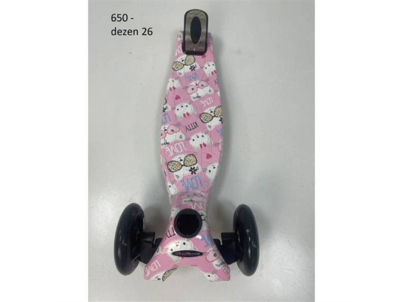 | Karakteristike | Materijal: Plastificirani metal + ojačana plastika Podloga: Teksturirana površina protiv klizanja Kočnica: Nožna kočnica iznad zadnjeg točka Točkovi: PU, tihi i pogodni za asfalt Dužina osnove: oko 55 cm Visina volana: od 60 do 80 cm (podesiva) Težina trotineta: ~2,5 kg |