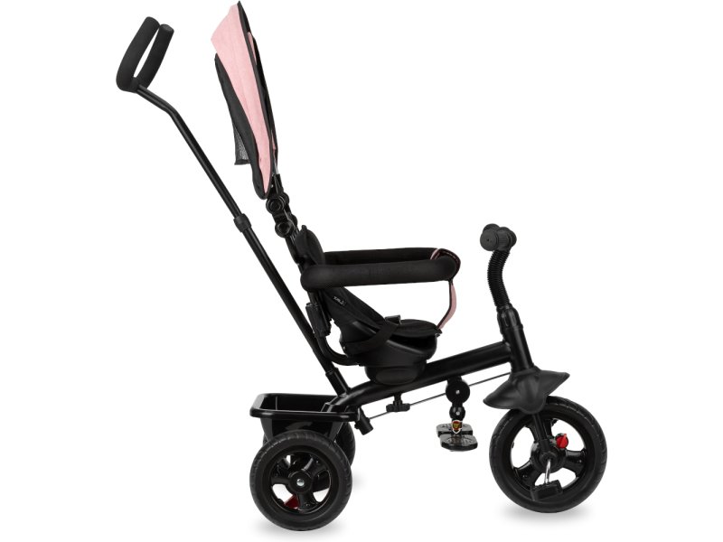 | Karakteristike | MoMi IRIS — alternativa za kolica, višefunkcionalno vozilo 5 u 1. Prvenstveno je odlično rešenje: sa mlađom decom ti omogućavaš potpunu kontrolu nad vozilom, a starijima daješ veću samostalnost. Tricikl ima čvrst ram — prečnik cevi je 1,2 cm. Prostrano, potpuno rotirajuće sedište (360°) pruža detetu udobnost tokom vožnje. Vozilo je opremljeno sigurnosnim pojasima, odvojivom barijerom i funkcijom slobodnog točka („freewheel“). Sadrži sklopivi oslonac za noge, veliki korpu za igračke i tapacirung koji se lako čisti.