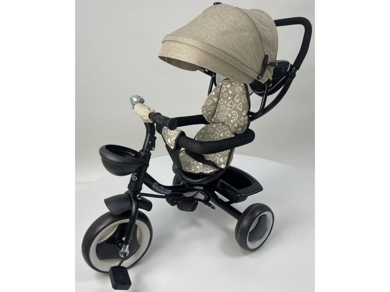 Tricikl 431 predstavlja multifunkcionalni tricikl koji raste zajedno sa detetom. Rotirajuće sedište od 360° omogućava vožnju licem ka roditelju ili unapred, što daje dodatnu sigurnost u najmlađem uzrastu. Podesiva tenda štiti od sunca, dok sigurnosni pojas i prečka obezbeđuju stabilnost tokom vožnje.