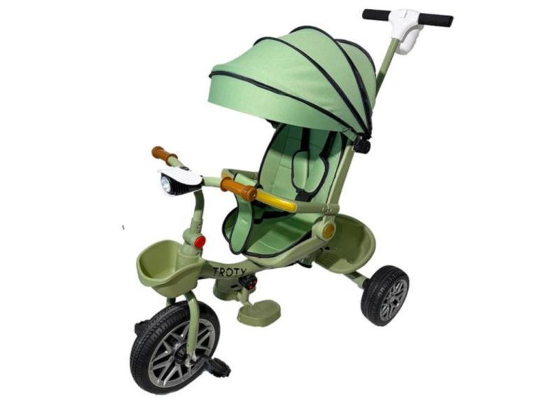 | Karakteristike | TROTY tricikl u maslinasto zelenoj boji stvoren je za udobne i bezbedne šetnje, kao i za razvoj motorike kod mališana. Zahvaljujući svom multifunkcionalnom dizajnu, tricikl se prilagođava uzrastu deteta i može se koristiti od faze gurane vožnje do potpuno samostalnog pedaliranja. Velika podesiva tenda pruža zaštitu od sunca i može se podešavati prema nagibu svetlosti. Sedište je duboko, mekano i opremljeno sigurnosnim pojasevima i zaštitnom prečkom, što osigurava stabilnost i sigurnu vožnju. Tricikl ima čvrstu metalnu konstrukciju, EVA točkove za udobno kretanje po različitim podlogama i zadnje kočnice. Roditeljska ručka omogućava lako upravljanje triciklom, a praktična prednja i zadnja korpica savršene su za flašicu, igračke ili sitnice tokom šetnje. |