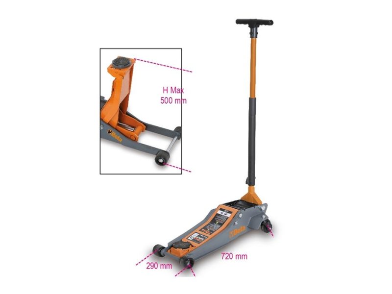 | Karakteristike | Visina dizanja: od 75 do 500 mm Nosivost: 2 t Dimenzije dizalice: 720 x 290 mm Težina: 36 kg |