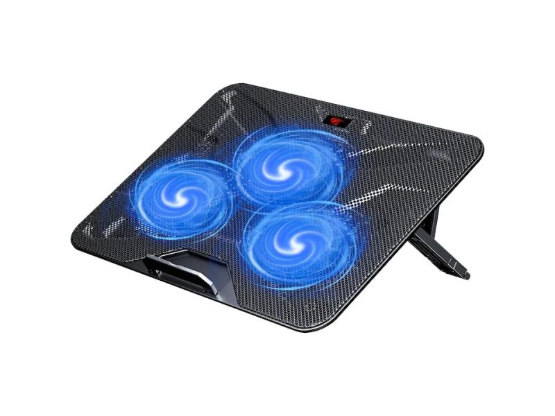 | Karakteristike | Kompatibilnost: Laptopi do 18.3 inča Ventilatori: 3 x 125 mm Brzina ventilatora: 1000-1200 rpm Nivo buke: do 28 dBA Osvetljenje: Plavi LED svetlosni efekat USB portovi: 2 x USB 2.0 (dodatni port za povezivanje drugih uređaja) Povezivanje: USB-A Napajanje: DC 5V Potrošnja energije: oko 4W Materijal: ABS plastika i metalna mreža Ergonomski dizajn: Podesiv ugao nagiba od 6.5° do 40° Dimenzije: 400 x 290 x 32 mm Težina: 0.745 kg |