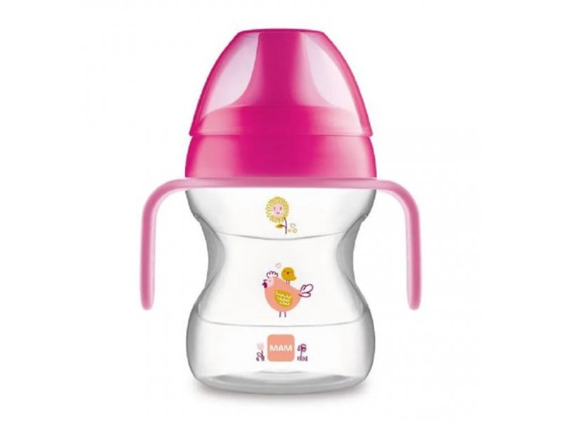 | Karakteristike | MAM čaša Learn to drink dizajnirana je tako da bebi olakša period prelaza sa flašice na čašu na samostalno pijenje. Ergonomski je dizajnirana i dolazi sa plastičnim ručkama koje bebi omogućavaju da lakše drži čašu. Uz čašu dolazi i tvrdi pisak sa no spill sistemom koji sprečava prosipanje tečnosti. Široko grlo flašice omogućava lakše pranje i punjenje flašice. Sterilizacija: u mikrotalasnom ili električnom sterilizatoru. Zapremina: 190ml |